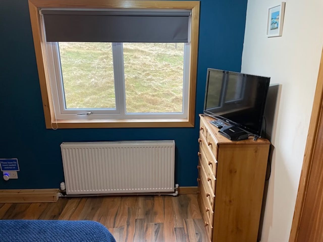 We offer two rooms, both have a double and single bed, sleeping two people in each room. All rooms have en-suite toilet, washbasin and shower and multi channel TV. This bedroom has a rural view. Your guest lounge has a sea view, where you can watch the ever changing weather and the night skies. There is very little light pollution, we are in a great place for star gazing and the northern lights.